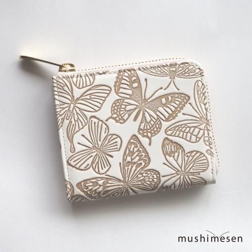 虫アートディレクター ムシメセン が日本の昆虫を描きデザインした「蝶と蛾の夢」のL字ファスナーミニ財布です。