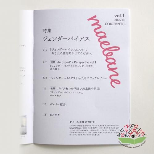「NPOムシメセン子どもプロジェクト」が発行している冊子「maebane 前翅」創刊号(Vol.1)です。