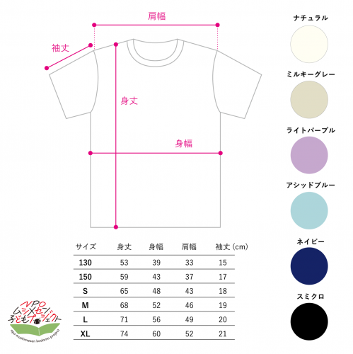 【NPOムシメセン子どもプロジェクト】オーガニックコットン100%Tシャツ